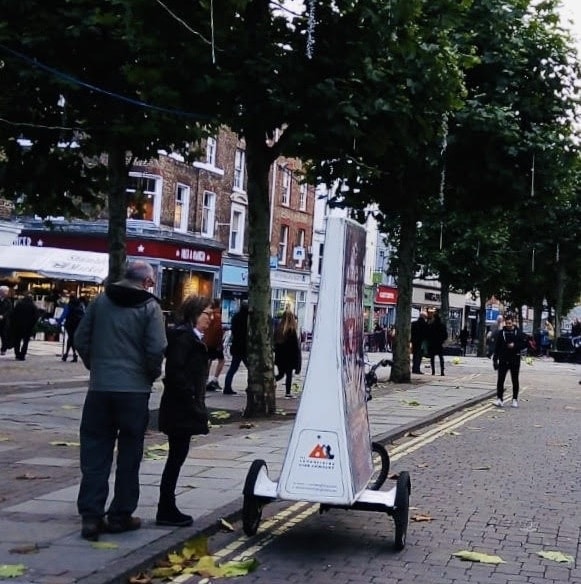 Each AdBike carry a surprisingly large integrated "AdPod"; this is big enough to host two sizeable 6-sheet posters (H1800mm x W1200mm) and is equipped with ample onboard storage allowing our savvy promotional riders to double-up as a built-in street team.