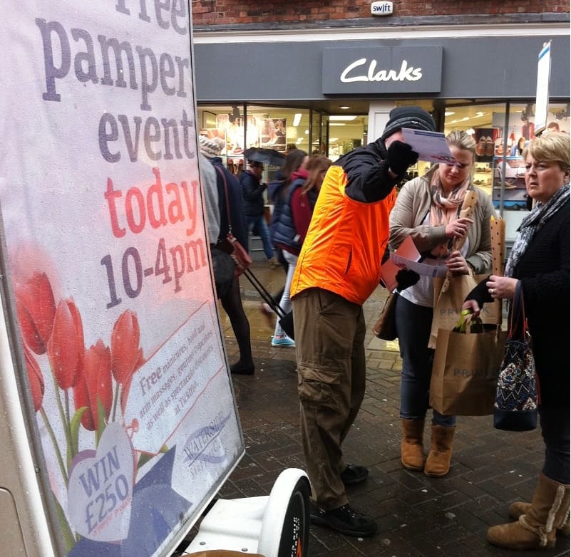 Taking the sandwich board of old concept to a higher level, AdWalkers unleash front and rear advertising to stand above the crowd. Acting as roaming human billboards, AdWalkers are fast becoming a more effective alternative to standard hand-to-hand leafleting.